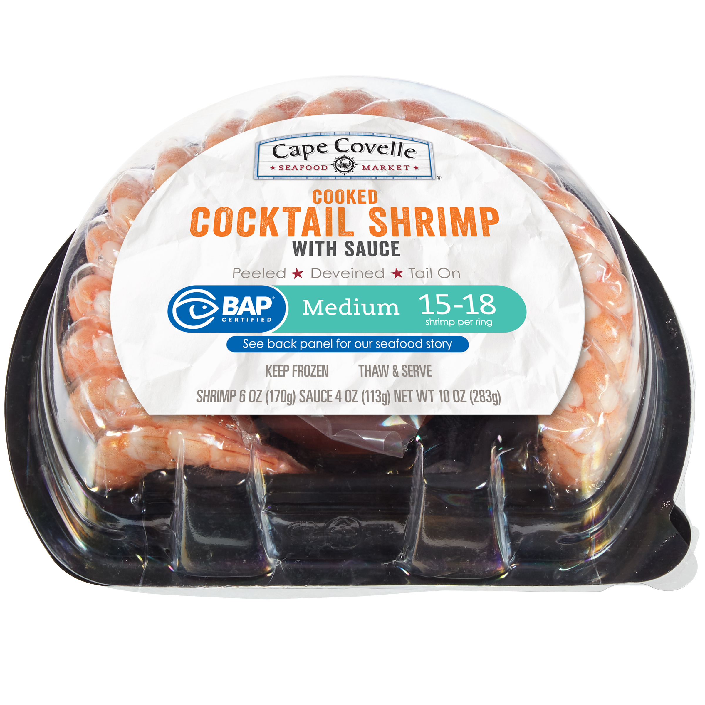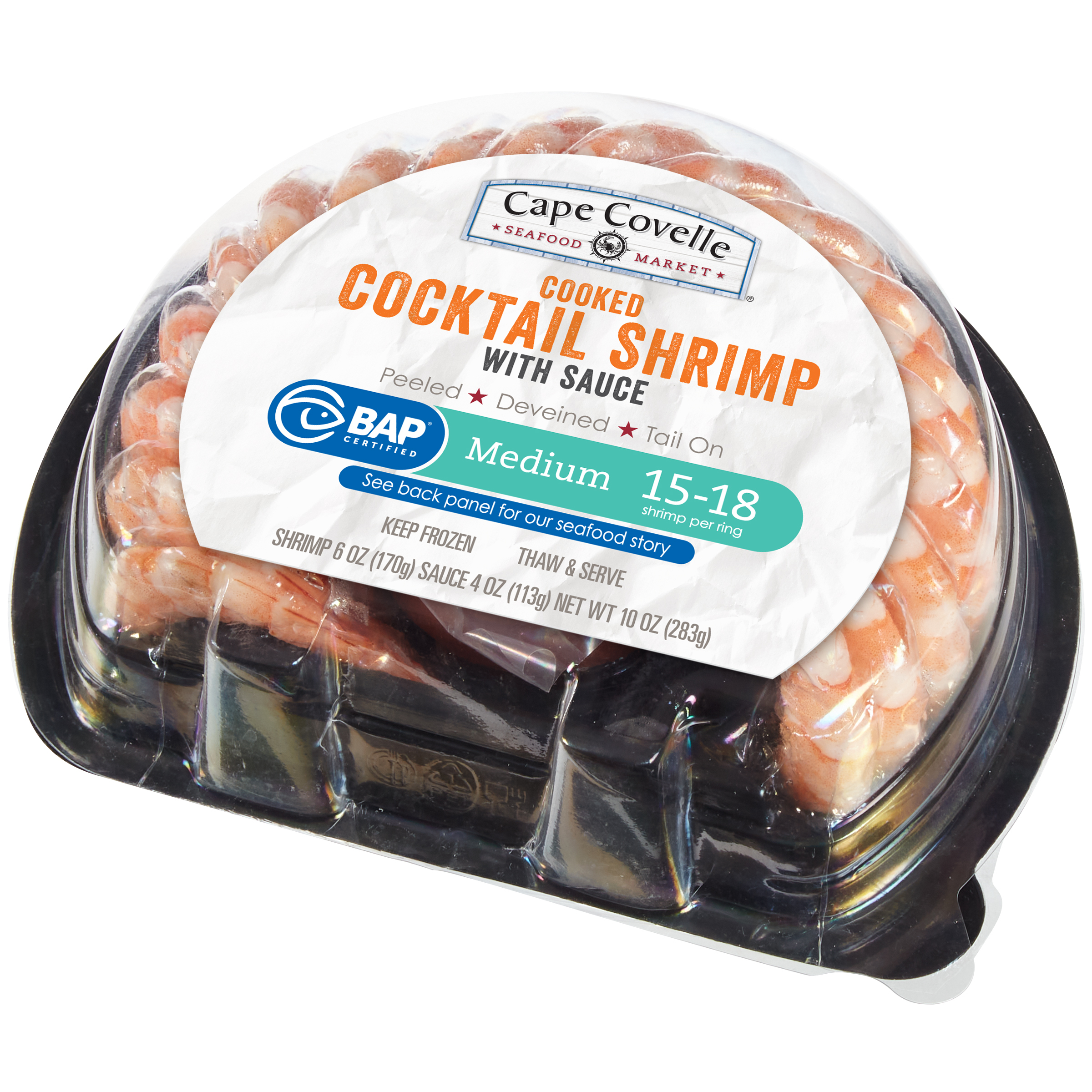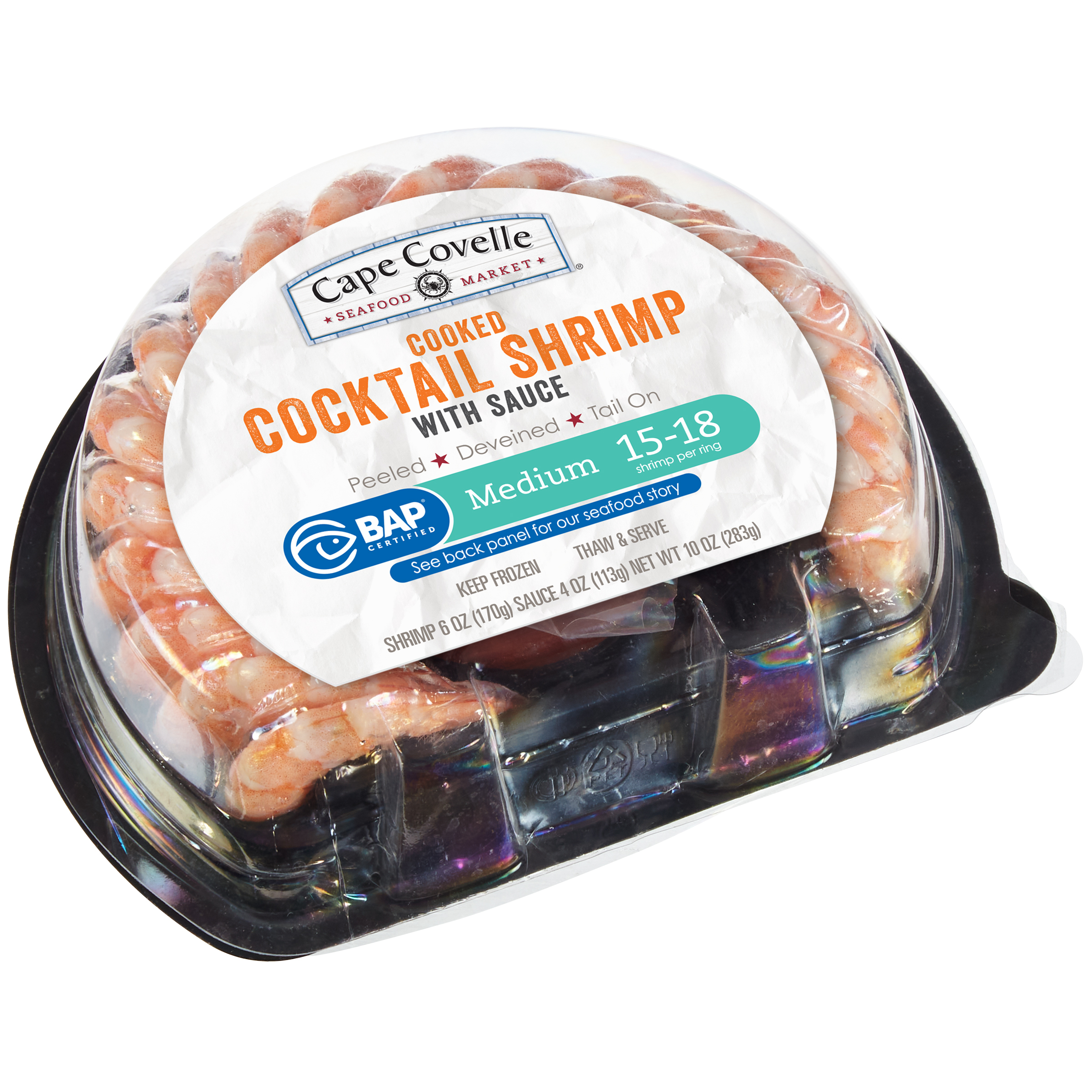 Cape Covelle Seafood Market Cooked Cocktail Shrimp with Sauce Medium 10 oz